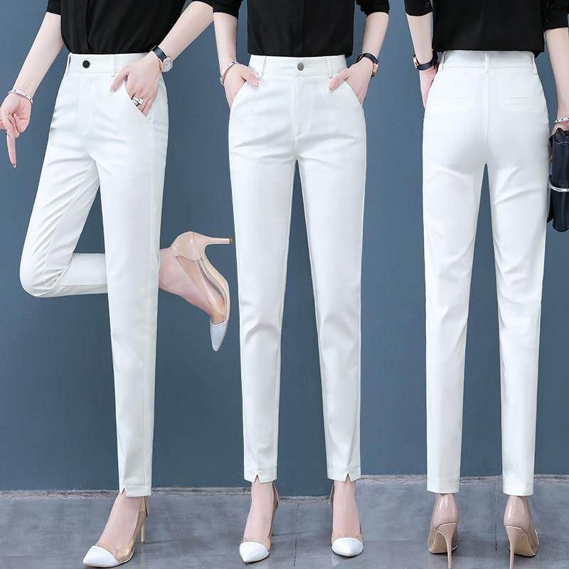 白色西装裤女夏季薄款2025新款高腰显瘦百搭修身小脚小个子九分裤