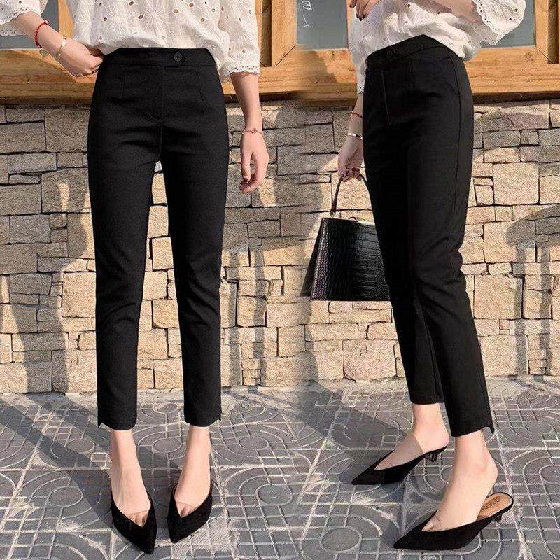 黑色西装裤女士夏季新款小个子职业小脚工装裤修身显瘦高腰九分裤