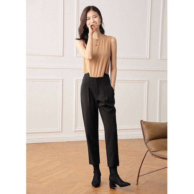 西装裤女春秋宽松高腰小脚萝卜裤九分哈伦裤直筒工作休闲裤女裤子