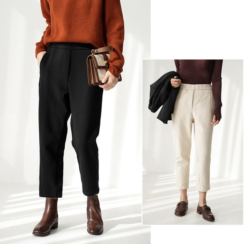 毛呢裤子女秋冬萝卜裤加厚休闲哈伦直筒西装裤高腰九分小脚烟管裤