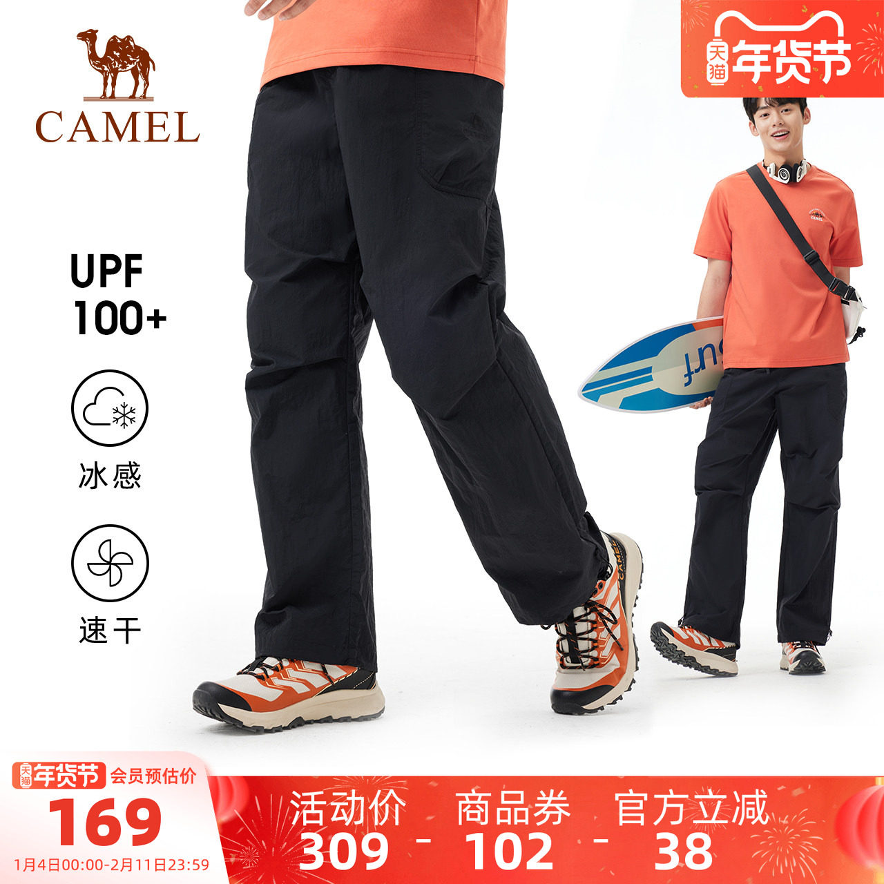 • 骆驼速干裤男春夏薄款冰丝户外运动裤男士休闲长裤子宽松梭织裤女