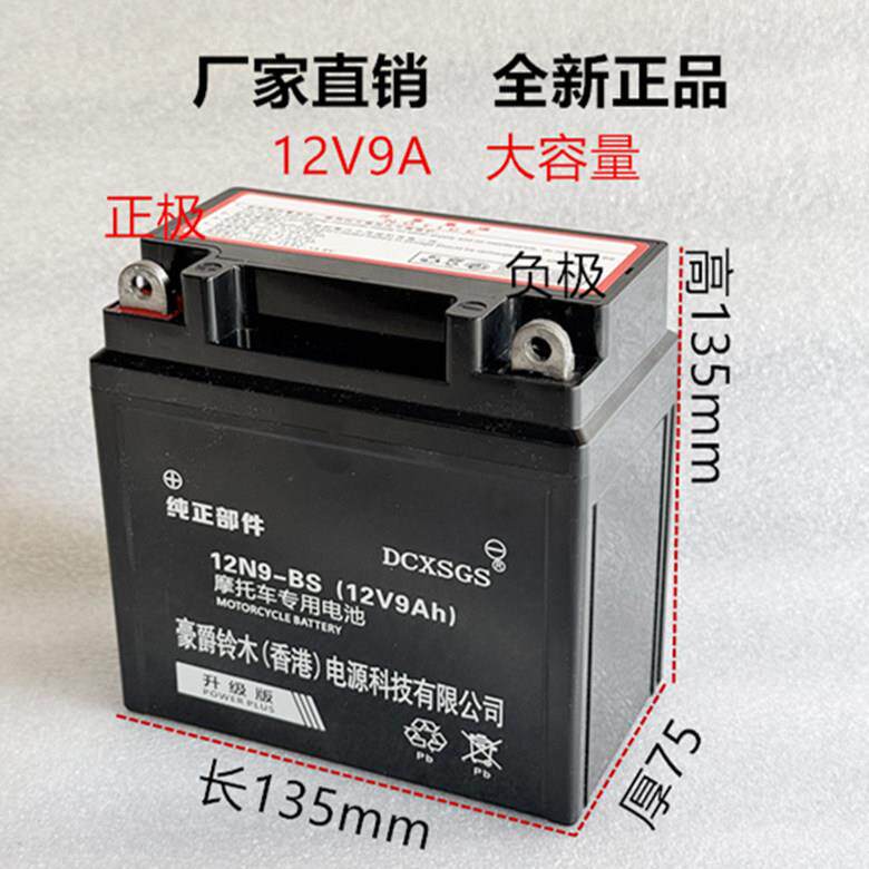 豪电瓶12v9a免维护干蓄电池125弯梁踏板车摩托通用干电池7ah