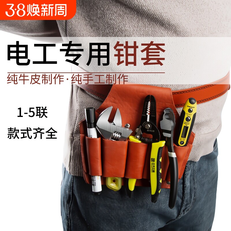 纯牛皮电工工具包腰包小五金腰带钳套加厚耐磨五联工具皮套扳手套