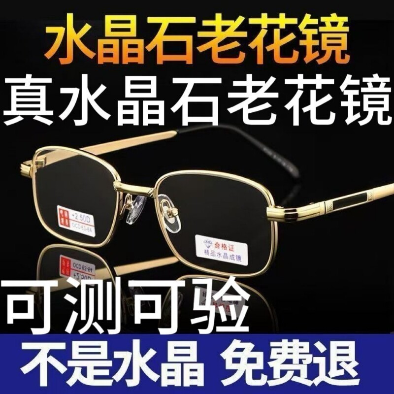 高清老花镜老花眼镜男女水晶玻璃中老年人真水晶100度镜片水晶石