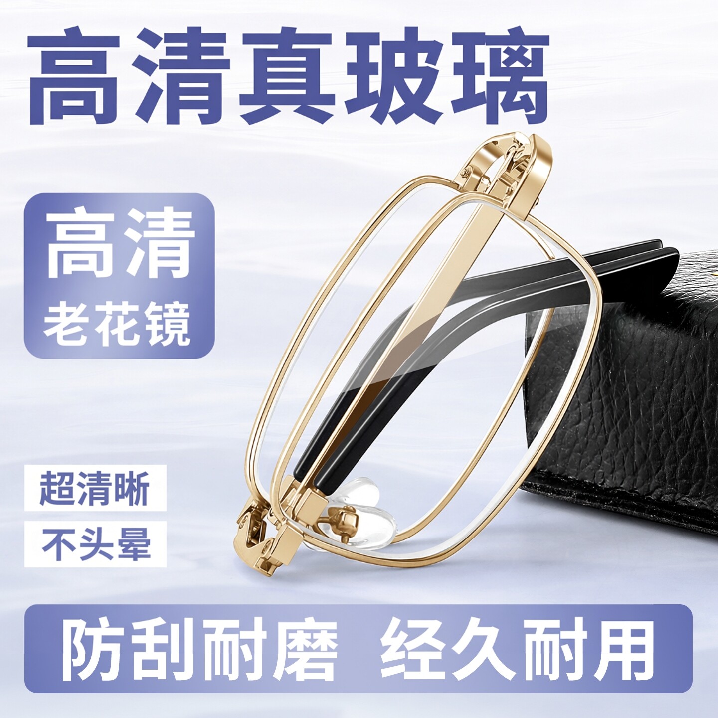 真玻璃折叠老花眼镜男款丹阳正品旗舰店正宗玻璃镜片材质2025新款