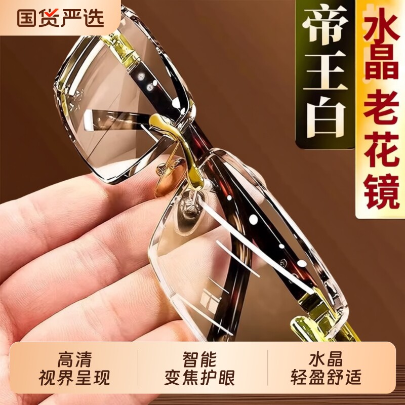 德国原装高档水晶老花镜老花眼镜男款自动智能变焦防蓝光超轻老人