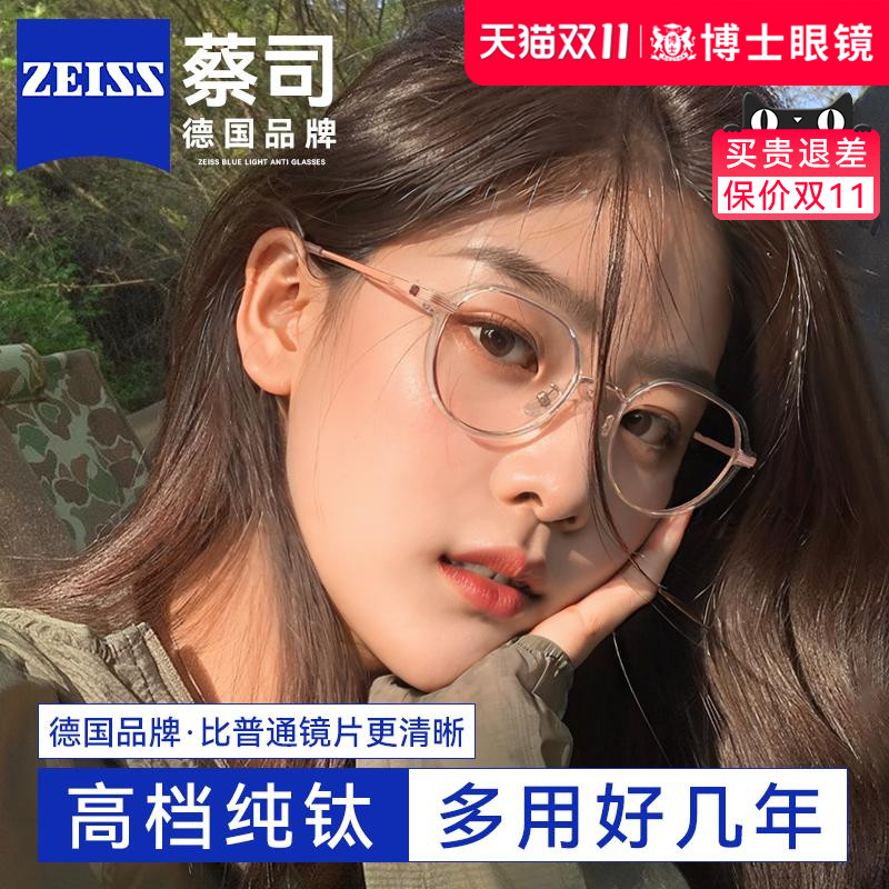 蔡司镜片纯钛近视眼镜女超轻素颜显瘦可配度数防蓝光眼睛镜框架男