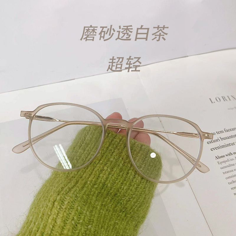 2022款磨砂茶色椭圆框近视眼镜女超轻平光镜素颜神器镜框大脸显瘦