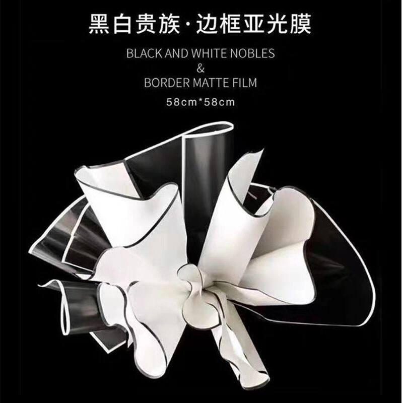 黑白贵族边框哑光金边果冻膜鲜花包装纸艺花束韩素花店包花纸材料
