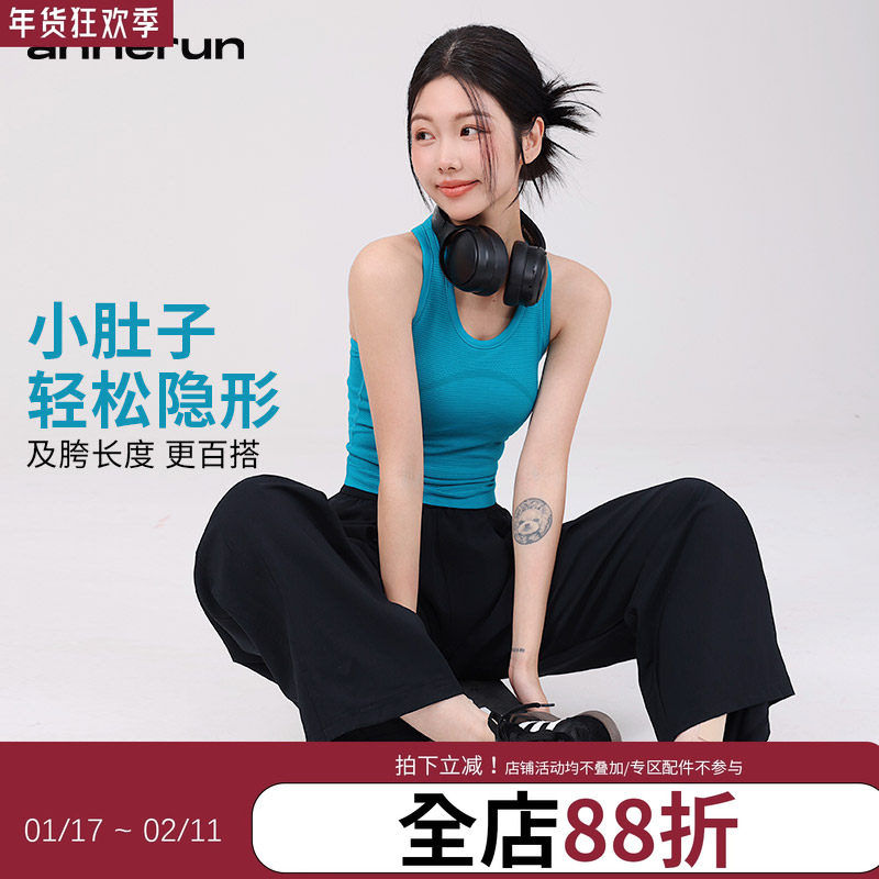 annerun运动内衣女宽肩带透气速干健身文胸高弹裸感跑步瑜伽背心