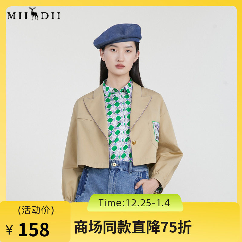 谜底短款外套女2023春季新款简约百搭西装领小外套长袖231MW0012