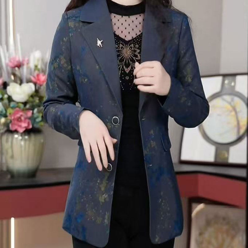 时尚印花妈妈西装外套女士2025春秋新款洋气百搭宽松显瘦长袖西服