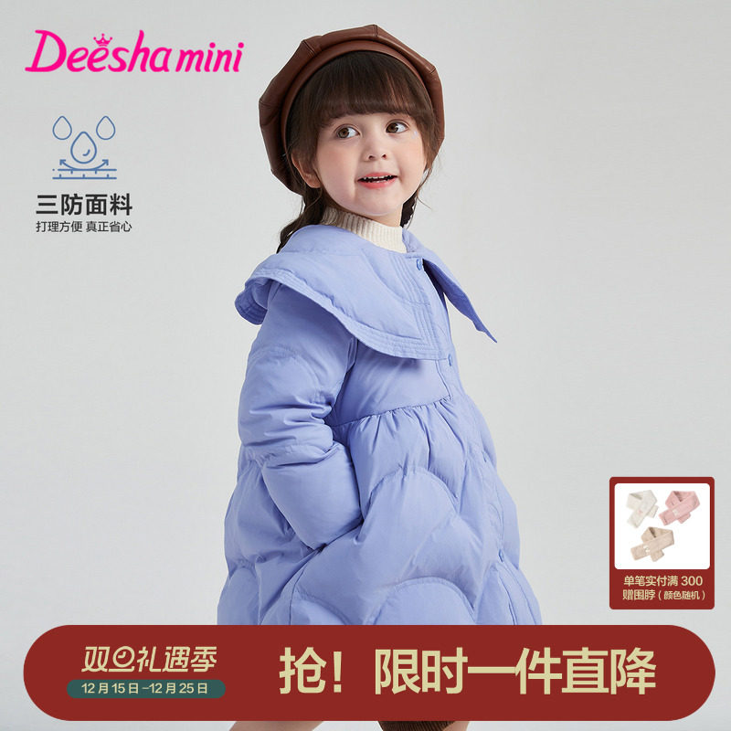 笛莎女童三防轻薄羽绒服冬季小童宝宝中长款外套上衣迪莎童装官方