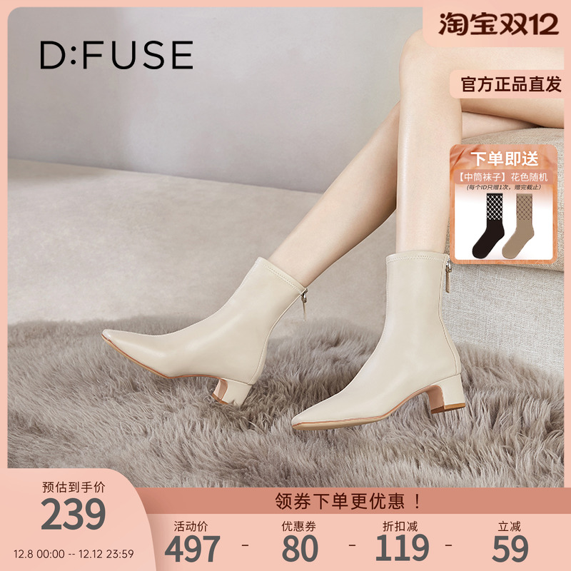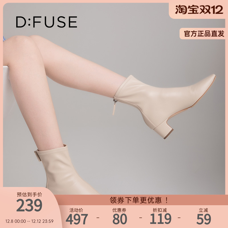 DFuse迪芙斯秋冬新款网红瘦瘦靴短靴女靴子中跟粗跟复古方头纯色