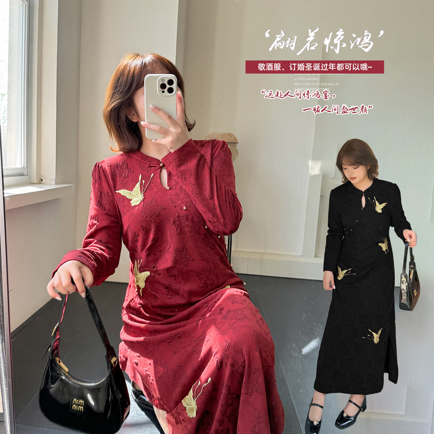 胖妹妹加肥大号码女装红色新中式改良旗袍裙2026春蝴蝶刺绣连衣裙