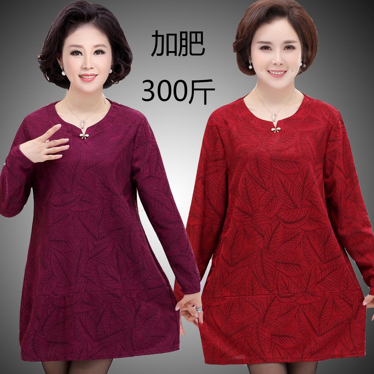 789xl中老年春装200斤胖妈妈连衣裙加肥大码长袖打底衫宽松特大号