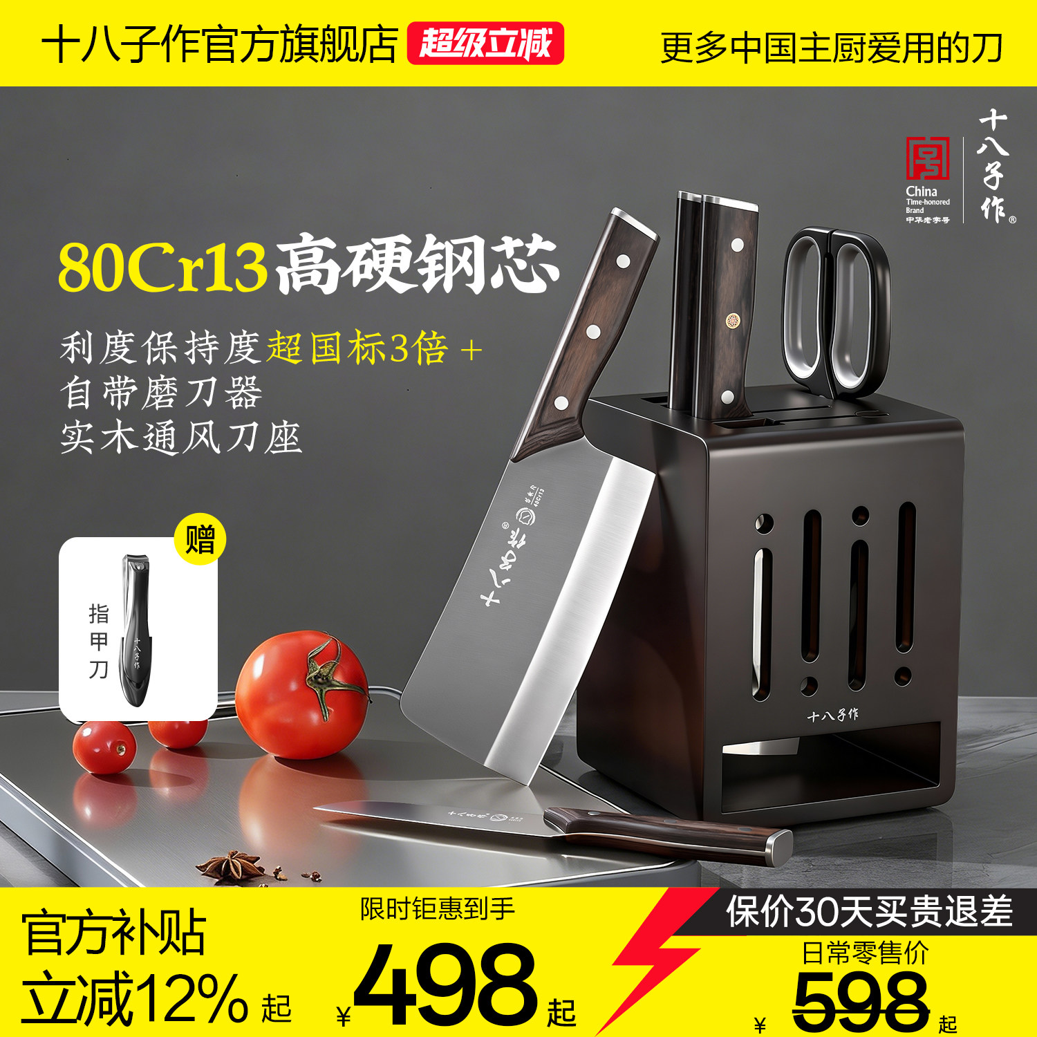 十八子作菜刀套装厨房刀具家用80Cr切片辅食水果刀菜板组合整全套