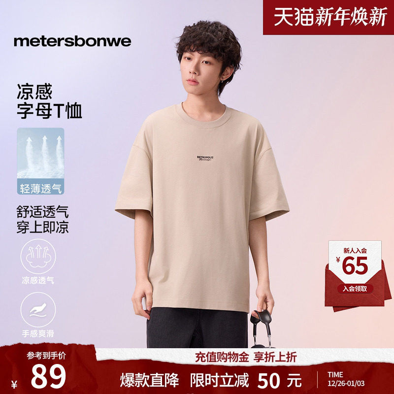 美特斯邦威白色T恤男女同款2025年秋季新款凉感宽松舒适短袖体恤