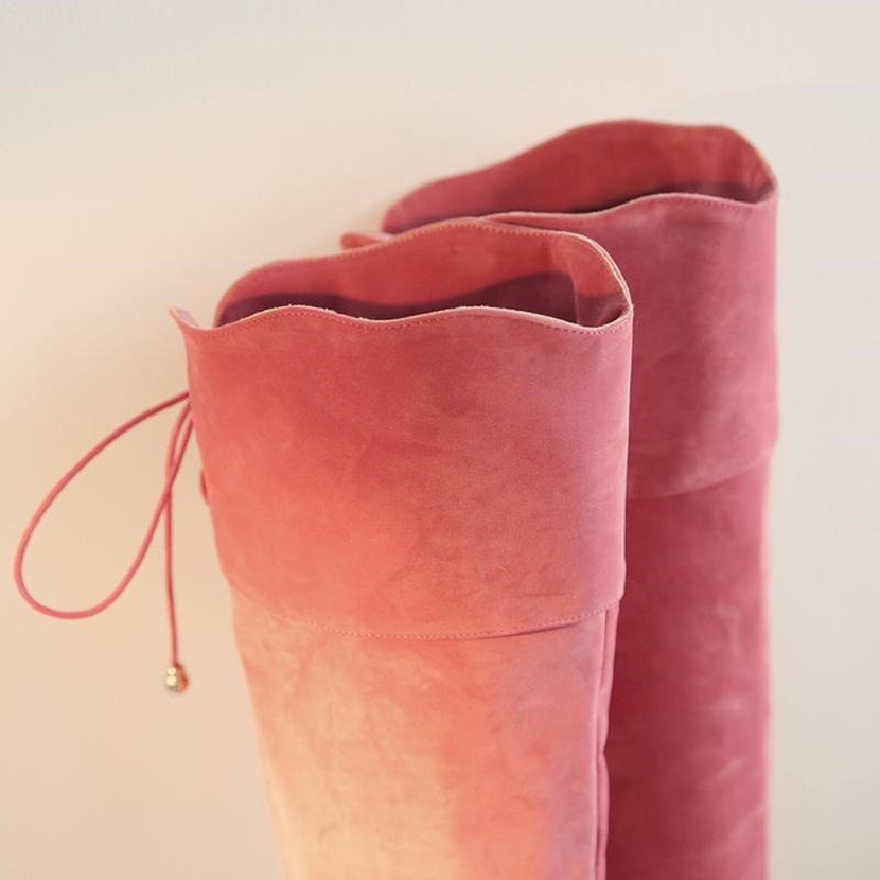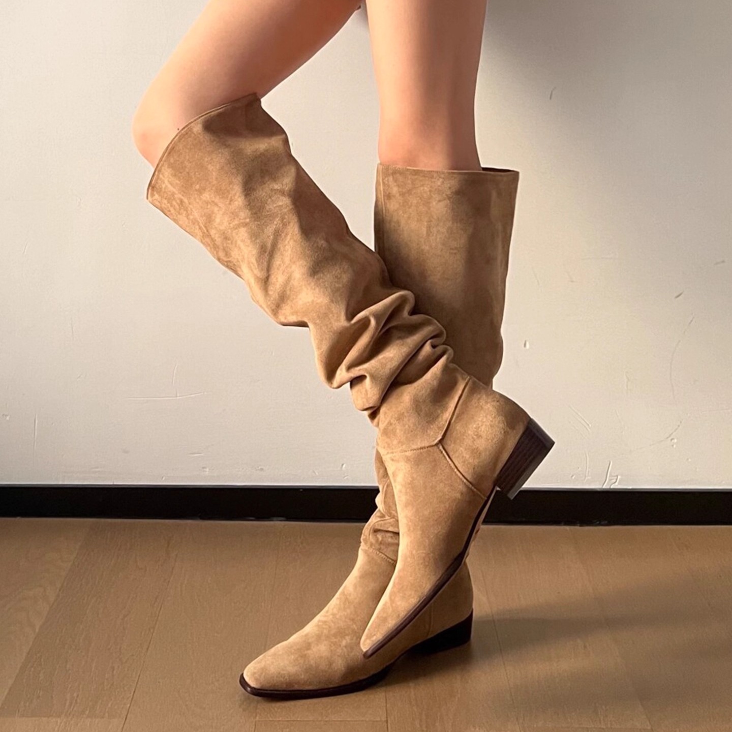 2025冬季简约时尚过膝女靴气质时装靴显瘦百搭粗跟绒面瘦瘦靴长靴