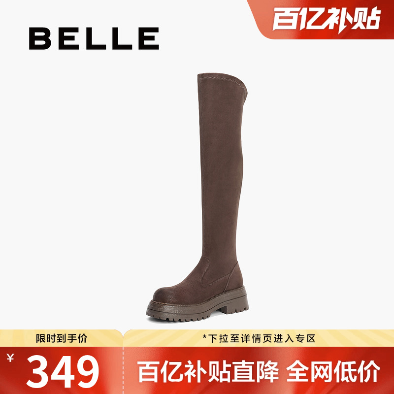 百丽女靴子过膝靴冬季新款厚底瘦瘦弹力靴长筒高长靴B2342DC4