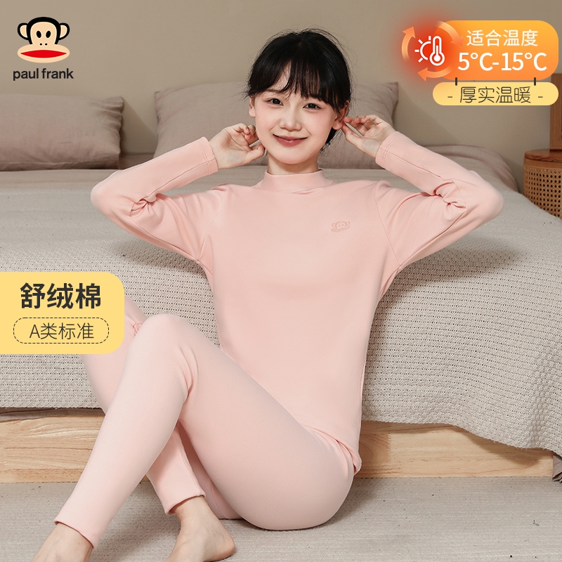 大嘴猴少女秋衣秋裤套装保暖内衣中大女童纯棉打底舒绒加厚棉毛衫