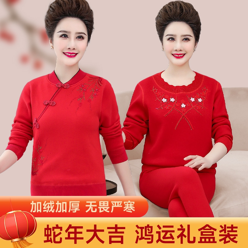 热风圈红色保暖内衣女秋衣秋裤2025蛇年本命年中老年人妈妈加绒加