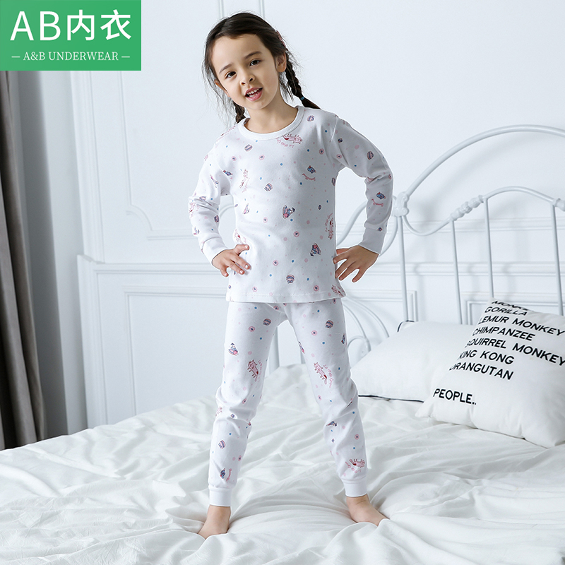 小ab儿童内衣套装秋冬薄款纯棉女童卡通圆领学生少女秋衣秋裤3800