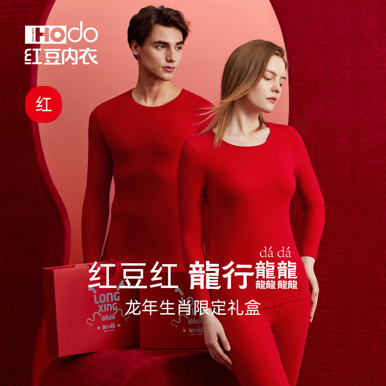 红豆居家大红色本命年内衣2026马年男女秋衣秋裤内裤保暖送礼盒装