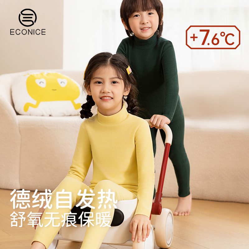 半高领儿童保暖内衣套装男童德绒发热加绒厚打底中大童女秋衣秋裤