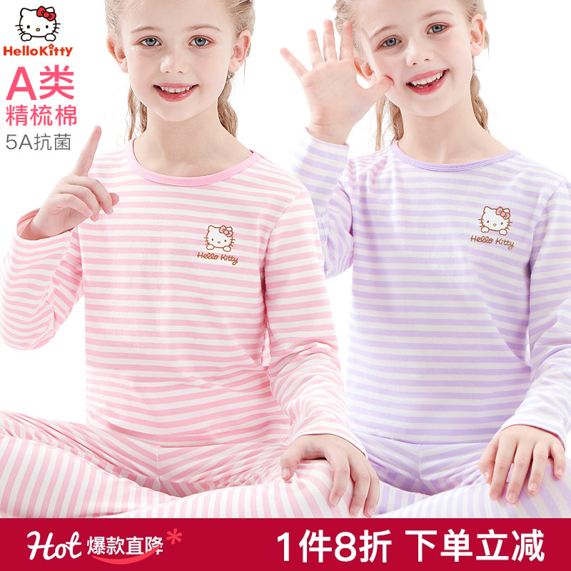 初中生少女秋衣秋裤套装纯棉a类女大童儿童保暖内衣青少年高中生