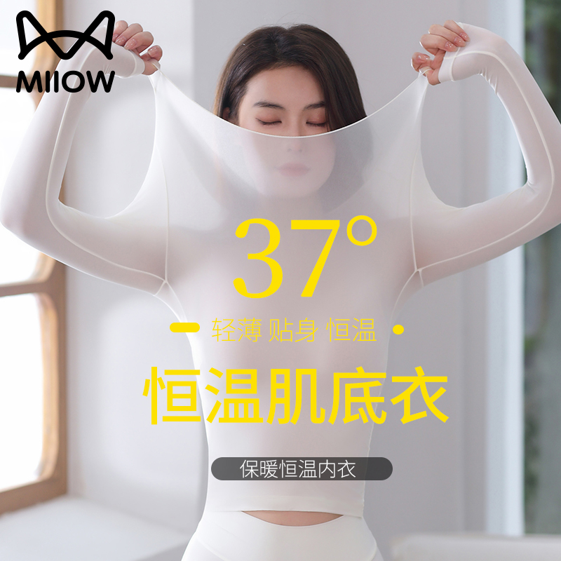 猫人保暖内衣女秋衣秋裤套装女超薄恒温肌底衣裸感热能衣轻塑修身