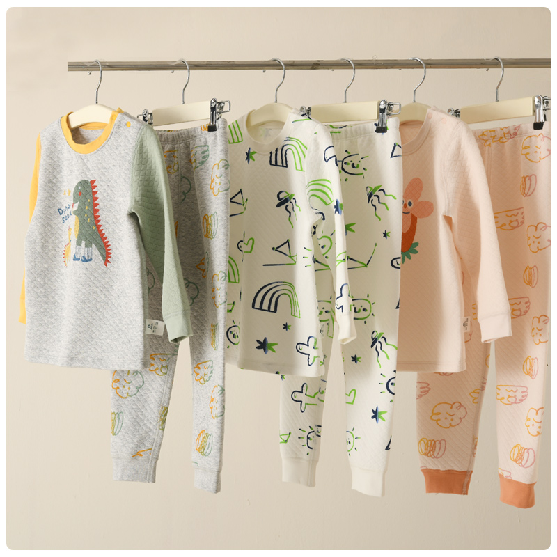 绿典彩棉儿童保暖内衣套装秋冬款男童女秋衣秋裤夹棉加厚三层保暖
