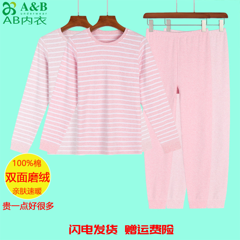 AB内衣双面刷绒女童保暖套装秋冬亲肤棉超柔大童少女秋衣秋裤Q576