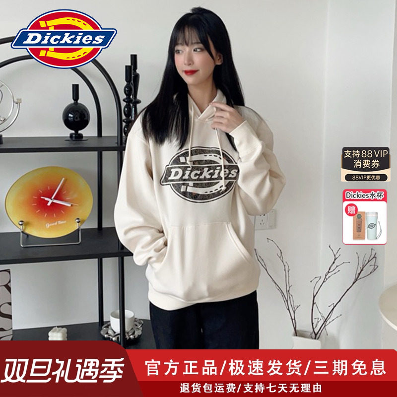 Dickies加绒卫衣女25春季新款大Logo印花休闲百搭学生连帽上衣男