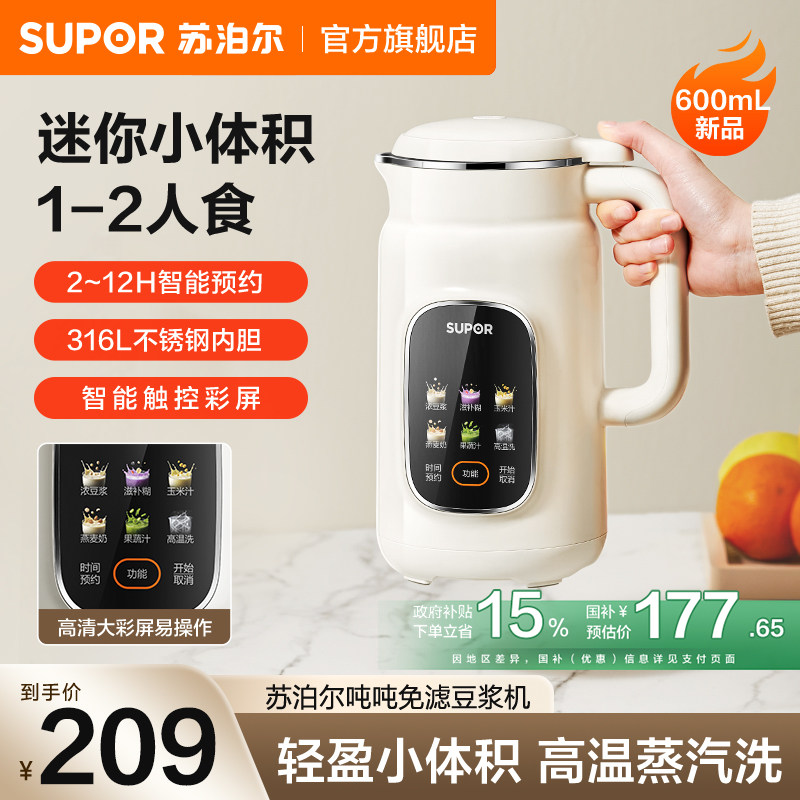 苏泊尔破壁豆浆机家用轻音小容量1-2人3多功能预约小型智能料理机