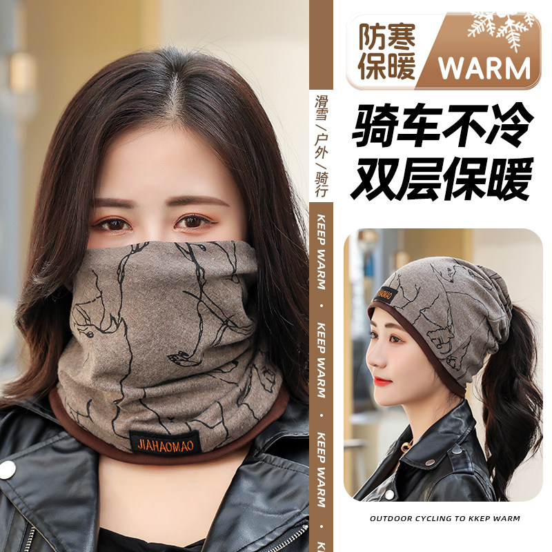 百变头巾帽男女通用时尚印花百搭羊绒扭扭帽加厚保暖围脖骑行御寒