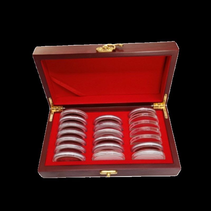 10枚装纪念币收藏盒木盒高铁10元鸡币航天币羊币狗年和字币生肖保护盒可调节内垫圆盒钱币硬币通用型礼盒