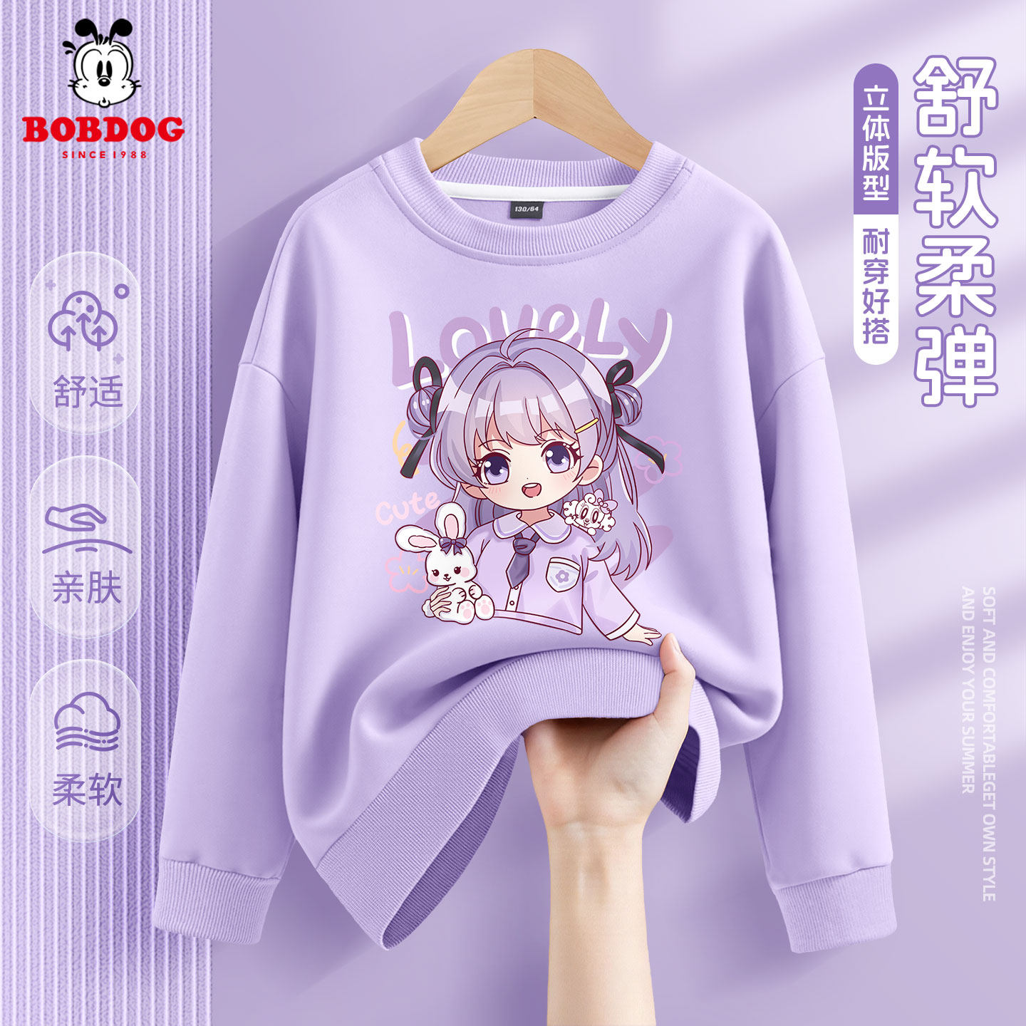 巴布豆女童春秋薄款卫衣2026新款儿童卡通上衣洋气时髦女孩打底衫