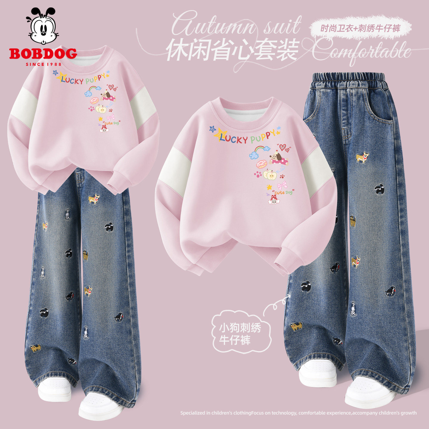 巴布豆童装女童休闲套装2026新款儿童春秋薄款卫衣洋气女孩牛仔裤