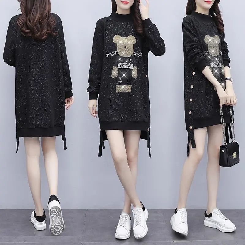 法式显瘦烫钻卫衣裙2025秋季大码女装洋气欧洲站中长款宽松连衣裙