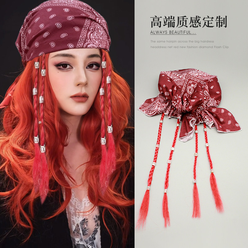 红发海盗腰果花包头巾嘻哈朋克个性街舞造型吸汗帽万圣节装扮头饰