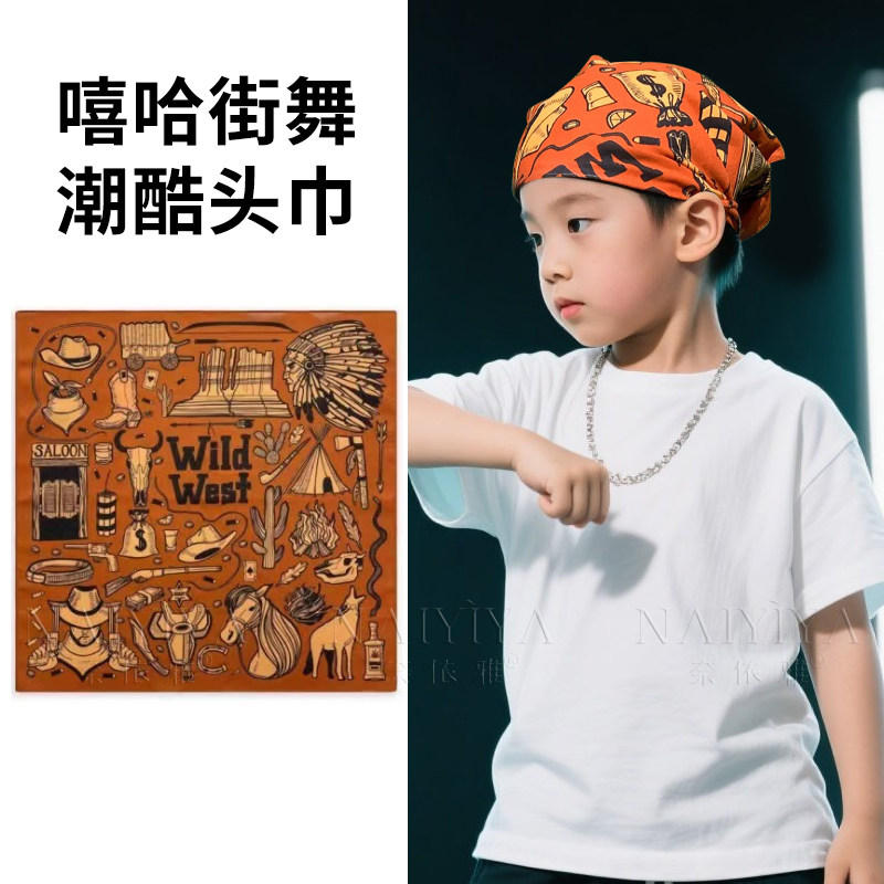 纯棉腰果花头巾男女街头美式街舞嘻哈hiphop复古儿童方巾发带领巾