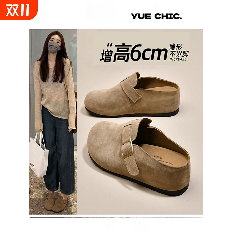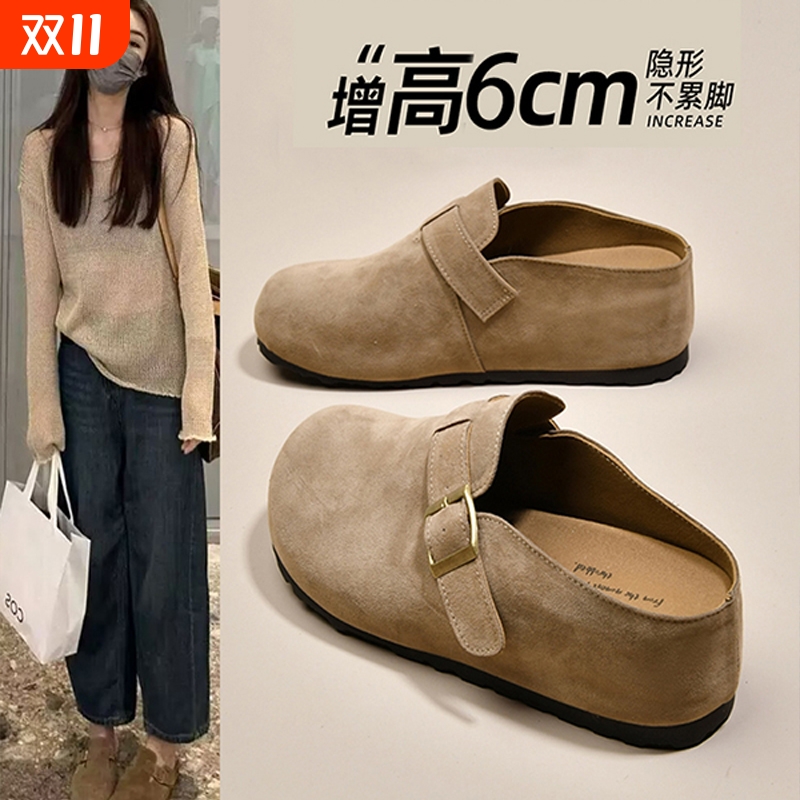 【王小毒】金豆玛丽珍●6cm内增高~包头勃肯半拖鞋女夏季软萌单鞋