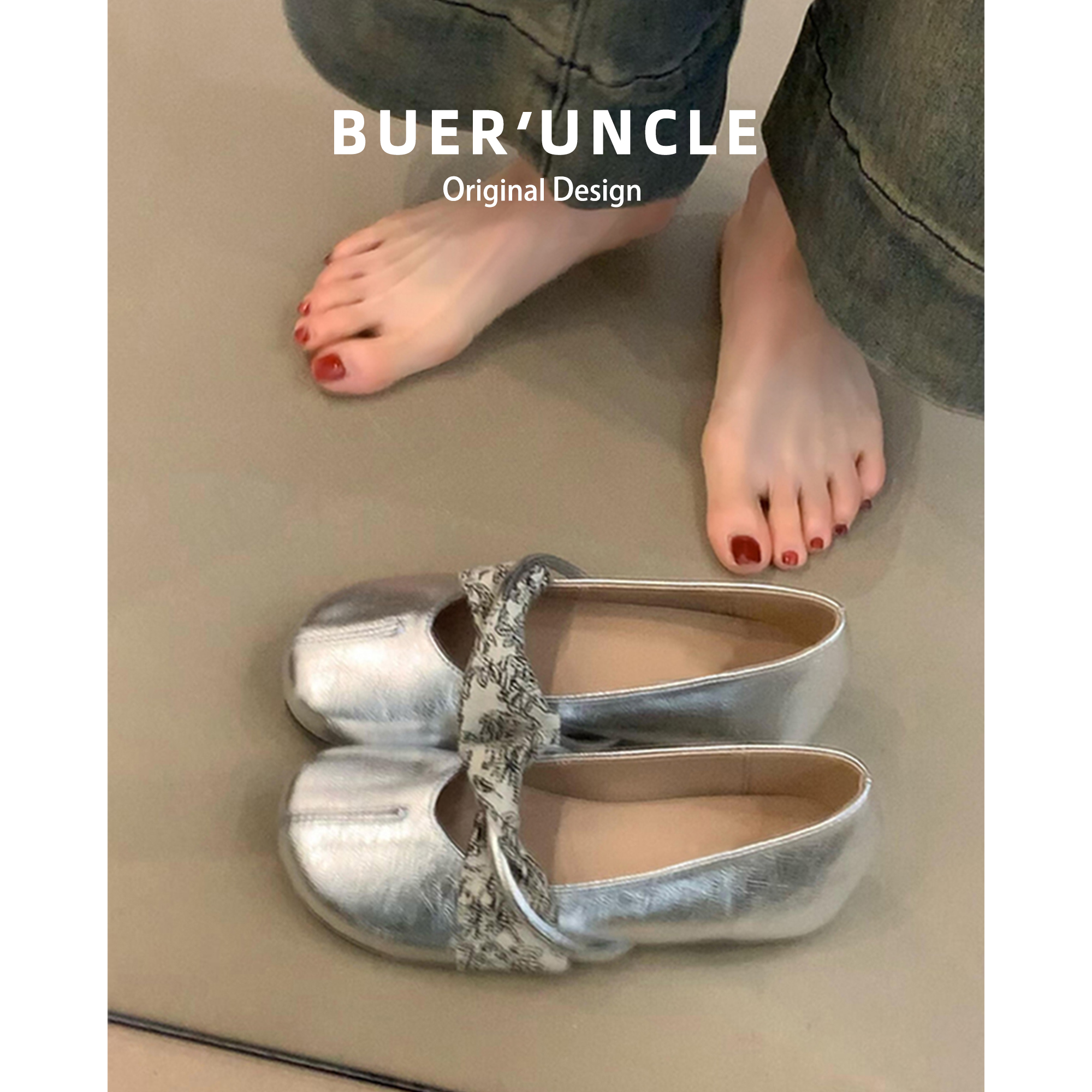 真皮~骄屿5cm内增高玛丽珍女鞋2025新款夏季法式芭蕾浅口银色单鞋