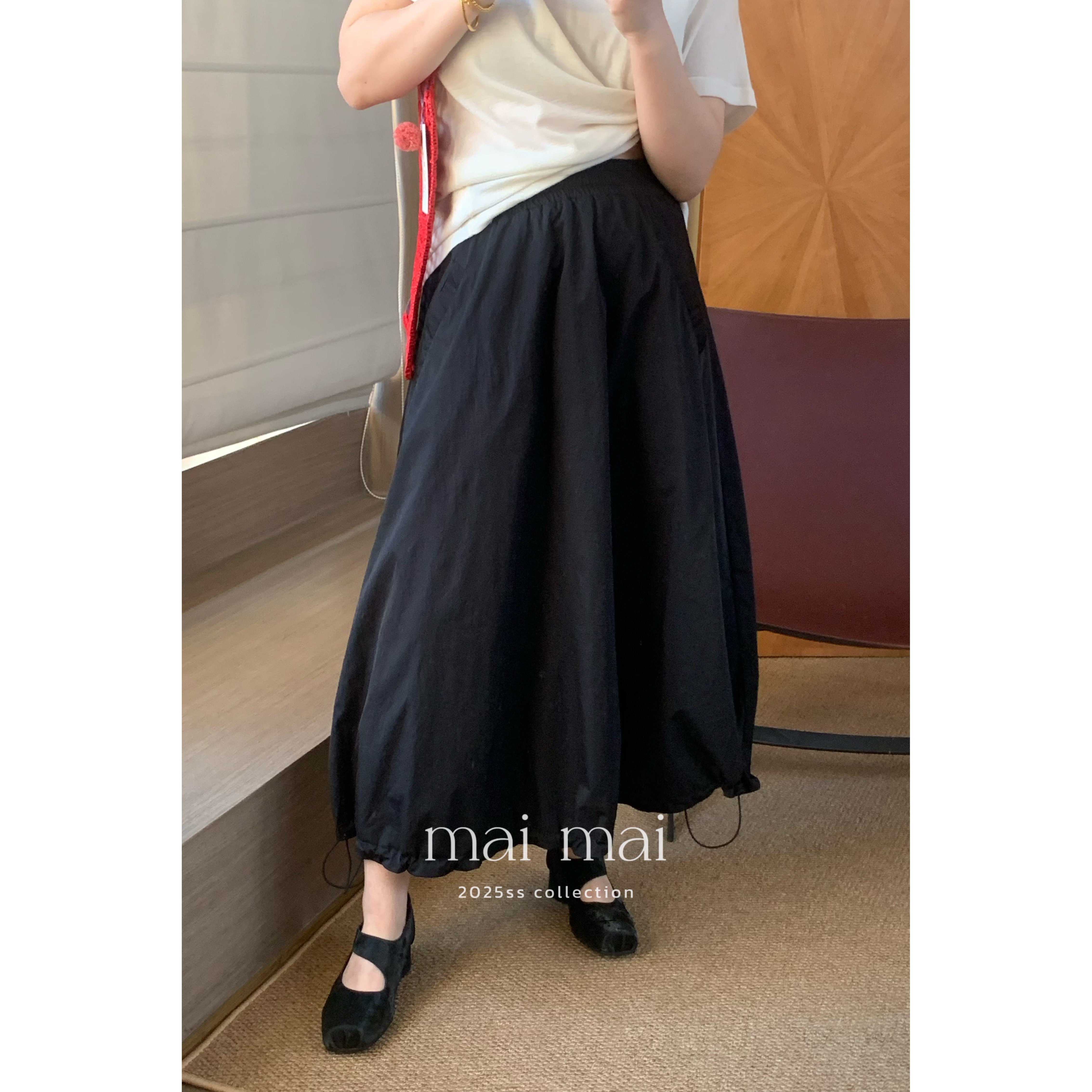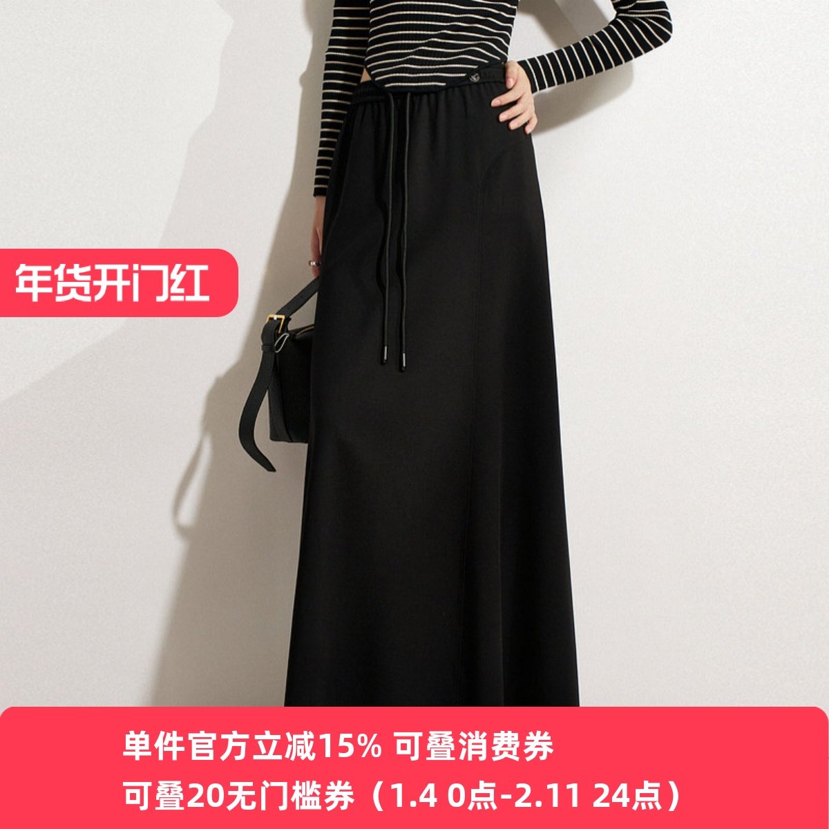 - 黑色半身裙中长