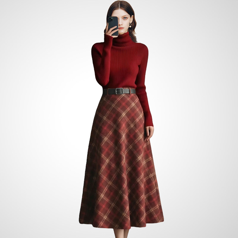 - 高腰裙子毛呢半身裙