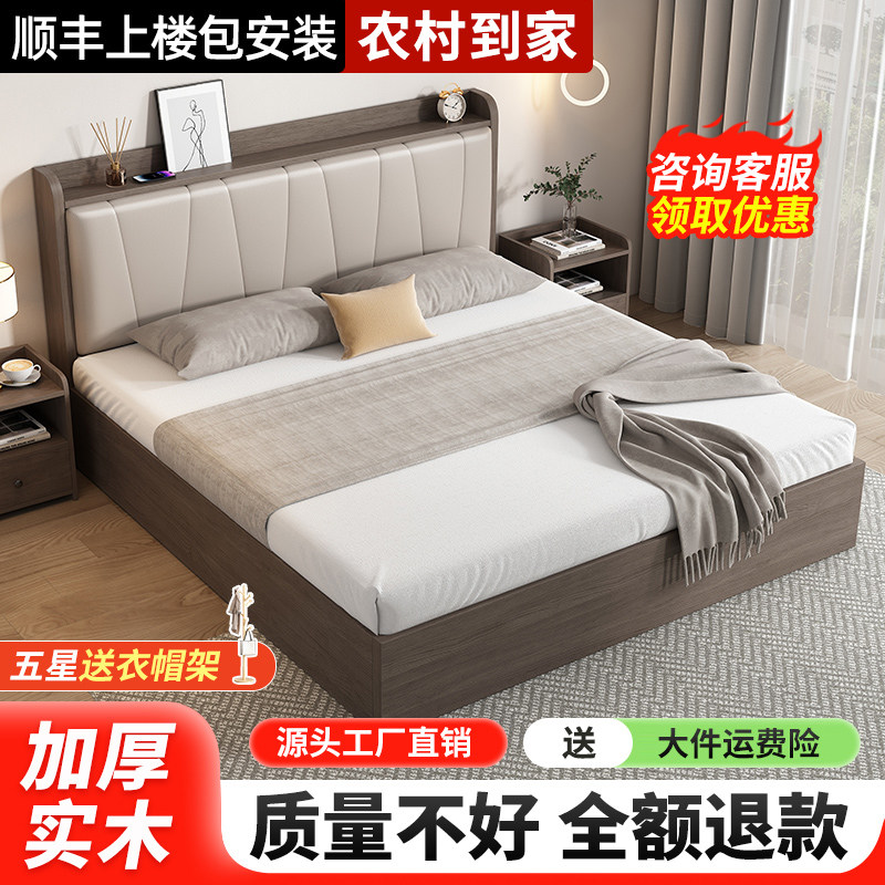 床双人床现代简约家用主卧1.5m实木双人床出租房用带软包单人床架