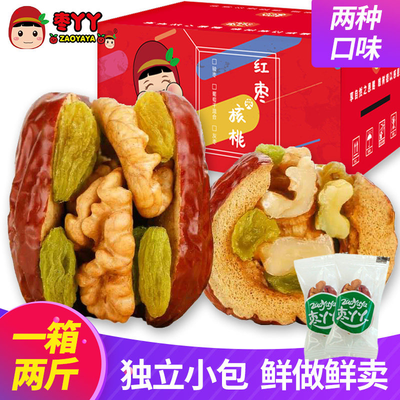 枣丫丫新疆红枣夹核桃仁葡萄干1000g抱抱夹心大休闲零食干果坚果