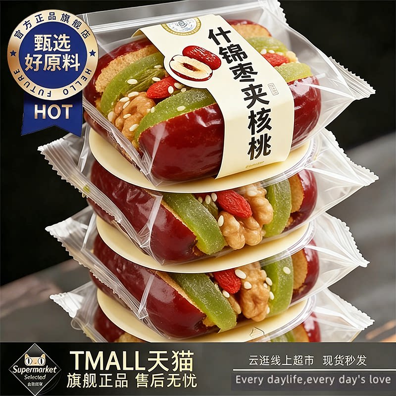 买1送1新疆和田红枣夹核桃仁葡萄干大枣子干果什锦夹心抱抱零食