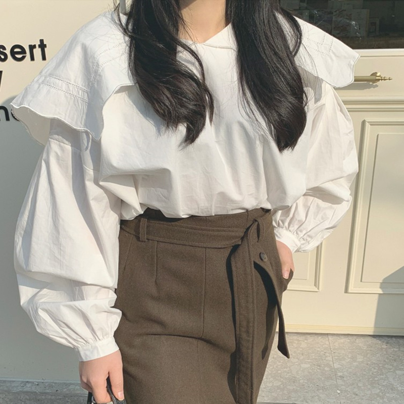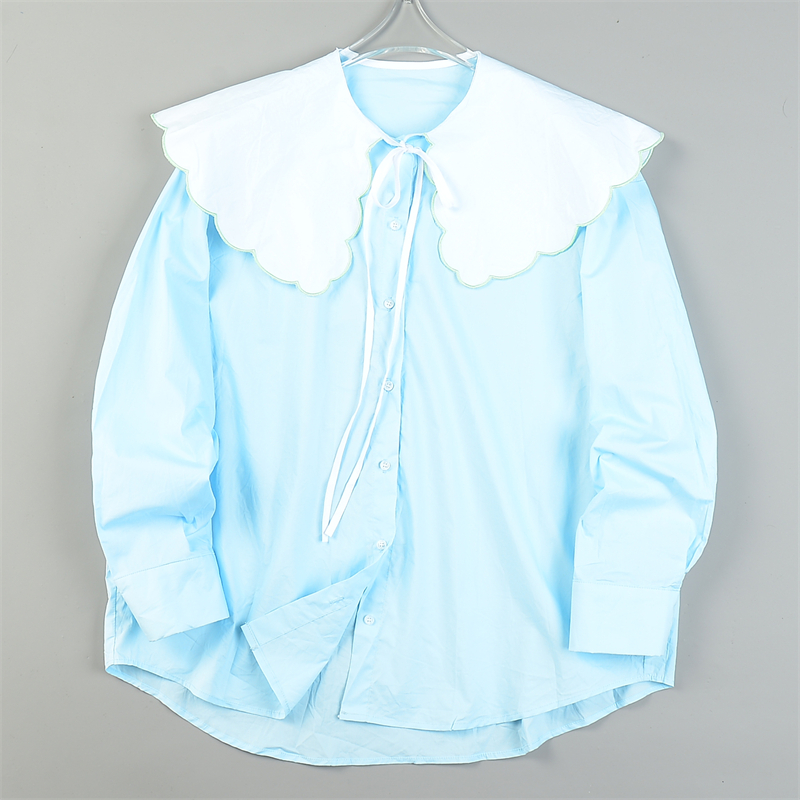 韩版花瓣边海军娃娃领长袖衬衫女L84020秋季宽松显瘦减龄甜美上衣